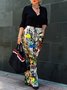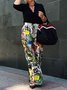 Pantalons Printemps / Automne Urbain Imprimé de Lettre Motif Polyester Quotidien Ample Long Régulier Poche Couture pour Femmes