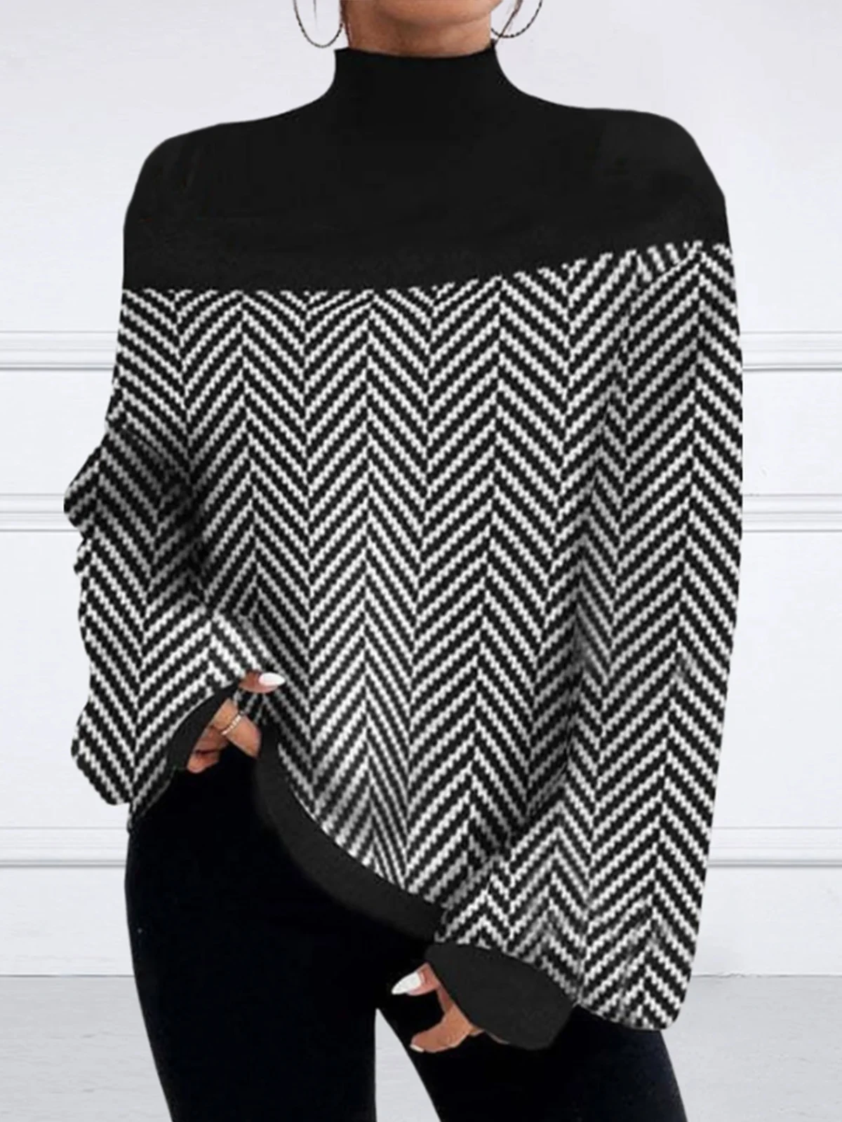 Pulls Femmes Bloc de Couleur Printemps / Automne Urbain Joint Fendu Ample Faire la navette Manches Longues Col Roulé Régulier